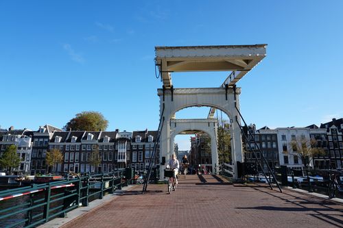 Uno de los puentes más pintorescos de la ciudad es el Magere Brug. Un estrecho puente levadizo solo para peatones y ciclistas que cruza el río Amstel y que esta decorado con más de 1000 luces al anochecer. Si tienes suerte puede que veas su parte central abriéndose para dejar pasar a algún gran barco.