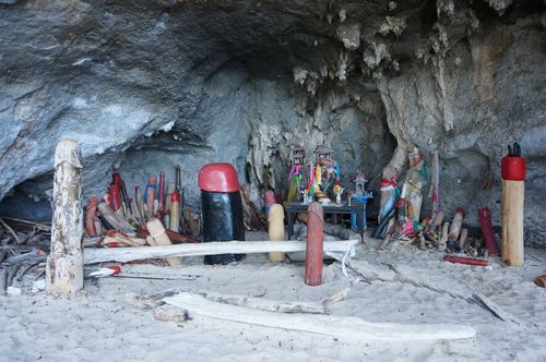 Esta curiosa cueva se encuentra en la playa de Phra Nang. Es un santuario para los pescadores donde verás multitud de formas fálicas de madera. ¿Por qué? Phra Nang es un espíritu femenino que simboliza la fertilidad. Dicen que la cueva se asemeja a una vagina, los pescadores locales creen que ofrecer un símbolo fálico dará como resultado una gran captura.