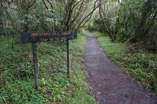 Existen varios senderos que recorren el parque nacional. En el folleto antiguo puedes encontrarlos todos pero en el folleto actual no (descargable desde la web oficial del parque, botón Descargar). En la web del parque indican que el sendero La Península y el mirador están en obras. Están haciendo el camino accesible a personas con movilidad reducida además de construir una pequeña cafetería. Los senderos que seguro puedes realizar son: Heliconias, Coladas, El Ceibo y el Mirador al Cono Volcánico. Hasta éste mirador se puede llegar en coche.