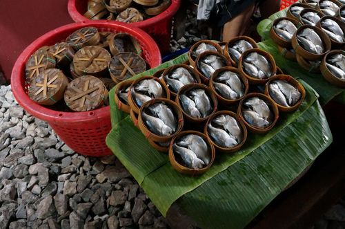 We visited first the Mae Klong market. Around there there is another covered market, where the vans from Bangkok left us. When we approached the stalls a mix of smells invaded our noses: dried or fermented fish, spices, food… some aromas were nice and some others not so much.