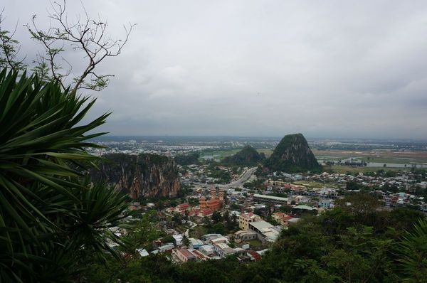 Las Marble Mountains (montañas de mármol) son cinco montañas de mármol que representan 5 elementos naturales: agua, madera, fuego, metal y tierra. En su cima se hallan pagodas, cuevas, templos, etc. De las 5 solo es posible subir a una de ellas, la más alta: Thuy Son (agua). Si la visitáis os topareis con varias pagodas en el camino y cuevas que albergan altares, esculturas, Budas, sepulcros budistas. Una de las cuevas sirvió como hospital durante la guerra del Vietnam. Desde lo más alto hay vistas panorámicas del entorno y de las otras montañas.