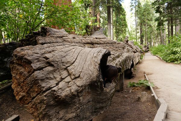 Por último, como curiosidad, esta el Tunnel Log una secuoya caída sobre la carretera a la que le hicieron un enorme hueco en su tronco para que los coches pudieran pasar. Esta cerca del General Sherman, puedes ver la localización en el mapa.